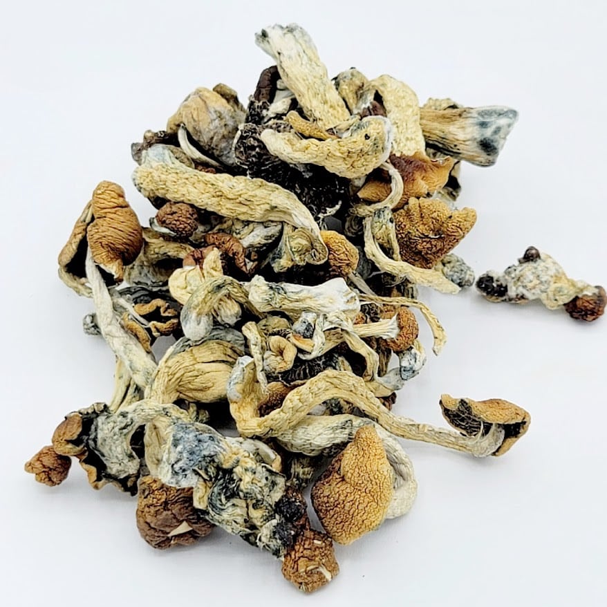 The Golden Teacher mushroom is a classic strain also known as Psilocybe Cubensis. It is named after its gold-capped appearance and spiritual teachings. These shrooms are an all-time favourite among the psychonaught community for its introspective and philosophical effects. The best thing about Golden Teacher mushrooms is that they offer a mild high psychedelic effect, therefore this is a gateway shroom for magic mushroom newbies. They are best known for their shamanistic properties, or spiritual effects rather than solely ‘’tripping’’. It’s not uncommon for the Golden Teacher mushrooms to produce a feeling of enlightenment and a deeper connection to nature.